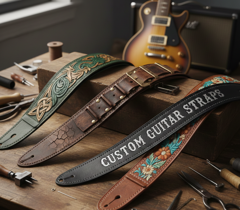Custom guitar straps take these functions and add personalization so guitarists can match their gear to their identity, genre, body size, or ergonomic needs.